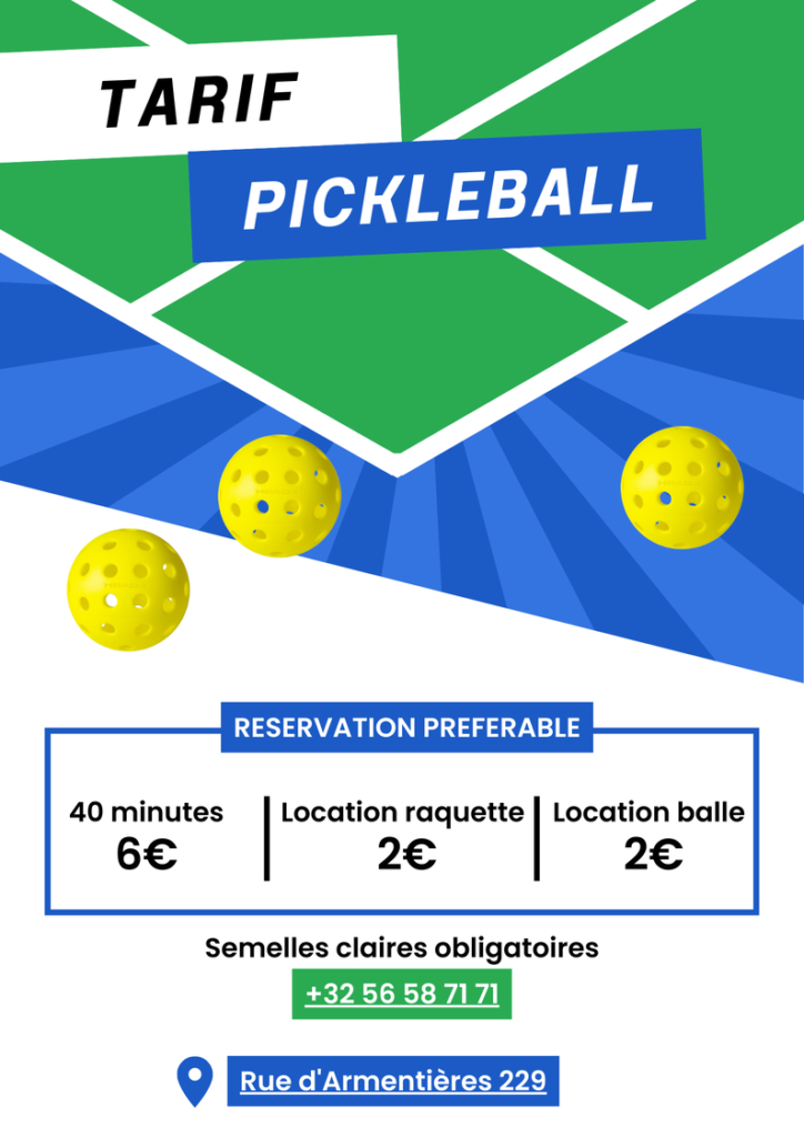 Notre salle de pickleball vous accueille le lundi de 16h à 23h, du mardi au vendredi de 10h à 23h et le samedi de 10h à 18h.